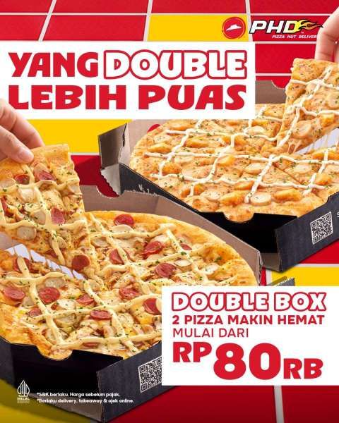 Dikutip dari @phd_id di Instagram, ada promo double box untuk 2 pizza dengan harga spesial mulai Rp 80.000-a.