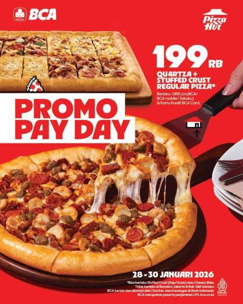 Promo Pizza Hut payday berlaku dine in dan take away mulai tanggal 28-30 Januari 2026.