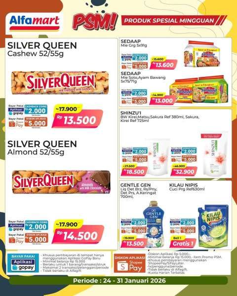 KONTAN.CO.ID - Inilah katalog promo PSM Alfamart terbaru 24-31 Januari 2026. Ada cokelat Silver Queen hemat di promo Alfamart produk spesial mingguan.
