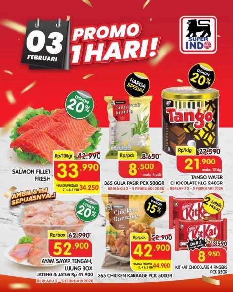 Sementara itu, katalog promo Superindo terbaru ini juga menampilkan diskon yang berlaku tanggal 2-5 Februari 2026.