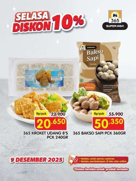 Superindo juga memberikan diskon 10% khusus di hari Selasa saja untuk produk 365 dari Superindo.