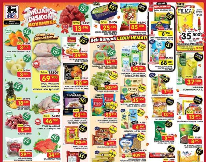 Promo Superindo weekday terbaru spesial hujan diskon November 2025 menawarkan buah dan daging harga spesial.