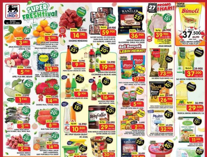 Ada berbagai produk menjelang Ramadan dengan diskon spesial di promo Superindo weekday akhir Januari 2026.