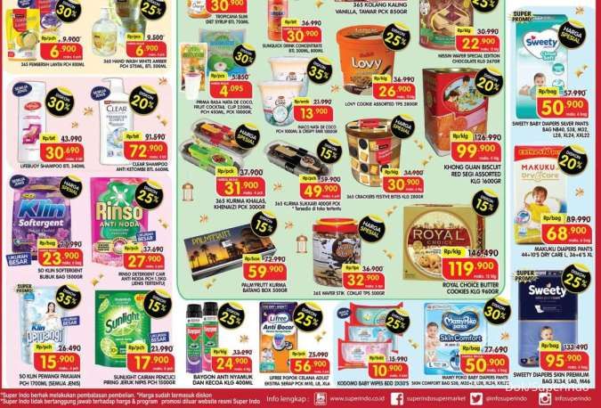 Di akhir promo Superindo weekday ada diskon produk kebutuhan bayi seperti Mamy Poko, Sweety, Makuku, dan Kodomo baby wipes.