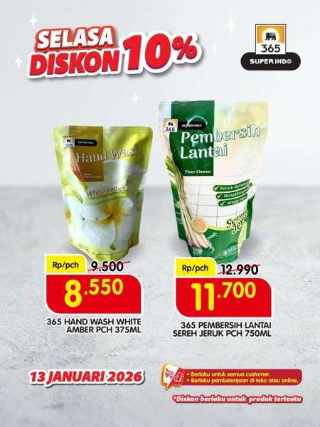 Produk-produk spesial 365 diskon serba 10% ini berlaku untuk semua pelanggan di Superindo.