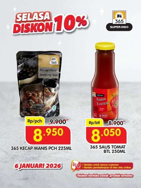 Superindo hari ini juga menyiapkan diskon serba 10% untuk produk khusus 365 dari Superindo setiap hari Selasa.