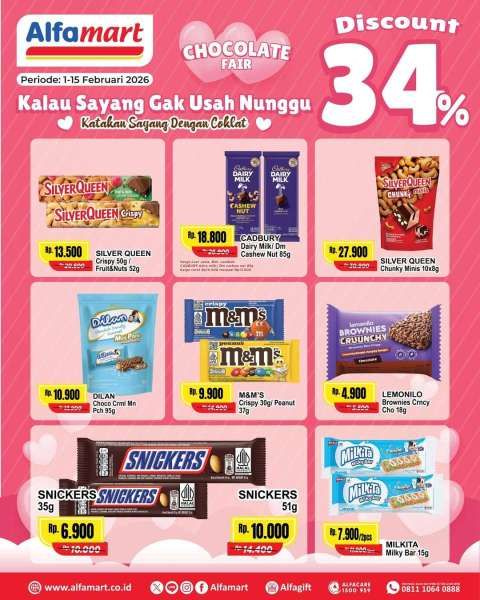 Jangan lupa, promo Alfamart spesial Velentine cokelat diskon 34% ini berakhir pada 15 Februari 2026.