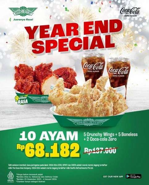 Promo Wingstop akhir tahun berlaku mulai tanggal 25 Desember 2025 sampai 4 Januari 2026 mendatang.