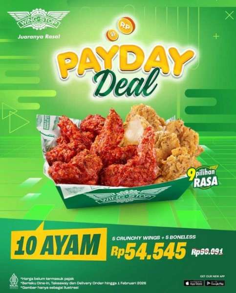 Dikutip dari akun @wingstopid di Instagram, ada promo payday deals untuk 10 ayam dengan harga lebih murah.